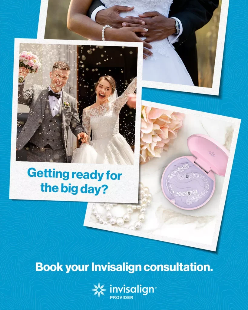 Because your aligners are removable, you can take them out for any occasions or photographs happening well before your big day. And, even if you only started treatment a short time before your wedding and still have some minor alignment remaining, our office provides the care you need to go aligner-free on your big day. We’ll also perform a tooth whitening procedure to give you the “picture-perfect” smile.
